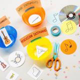 Pasul 4: Gata de joacă! Fă două seturi de cartonașe, unul alb și unul galben. Apoi alege un cartonaș din fiecare set. Acum desenează ce este indicat pe cartonaș. Dacă ai ales un cartonaș cu un cerc albastru și unul cu zig-zag – vei desena un zig-zag albastru; un cartonaș portocaliu și un triunghi? Vei desena...un triunghi portocaliu!